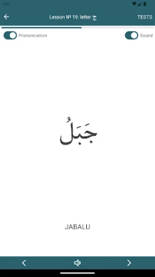To facilitate learning and understanding, the lessons are arranged in increasing complexity, from easy to difficult, so you need to start learning from the first lesson, and as you master the material, move on to the next lesson. First, go through the whole lesson by flipping the buttons below, back and forth, listening to the pronunciation of all the words and, if necessary, looking at the transliteration. Then, turn off the pronunciation and transliteration and read the whole lesson. After reading each word individually, check yourself by clicking on the scoring button (located at the bottom of the screen). After that, pass the test (the button is located on the top right) and, in case of successful passage, go to the next lesson. If difficulties arise, you can go through the lesson, again. Doing this program, you will easily master the Arabic letters and learn to read in Arabic.