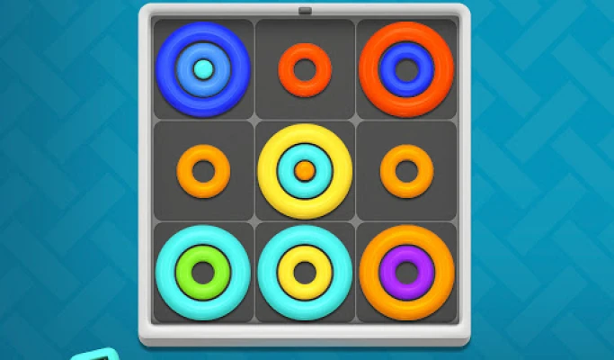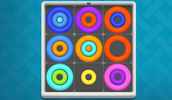 🍭Once the same color rings match in line, then you will eliminate them and get score.