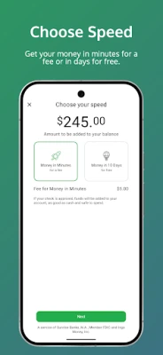 Ingo Money is a service provided by Sunrise Banks, N.A. Member FDIC and Ingo Money, Inc., subject to the Sunrise Banks and Ingo Money Terms and Conditions and Privacy Policy. Approval usually takes 3 to 5 minutes but can take up to one hour. All checks are subject to approval for funding in Ingo Money’s sole discretion. Fees apply for approved Money in Minutes transactions funded to your card or account. Unapproved checks will not be funded to your card or account. Ingo Money reserves the right to recover losses resulting from illegal or fraudulent use of the Ingo Money Service. Your wireless carrier may charge a fee for data usage. Additional transaction fees, costs, terms and conditions may be associated with the funding and use of your card or account. See your Cardholder or Account Agreement for details. Ingo Money service is not available for use within the state of New York.