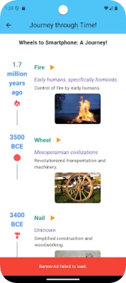 Timeline Feature: Travel through time and see how inventions have evolved, from the discovery of fire to the emergence of smartphones and blockchain technology.