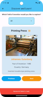 Quizzes: Test your knowledge with quizzes spanning different levels on inventions and their inventors. Progress through increasing difficulty levels to track your learning journey.