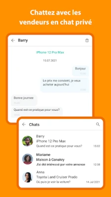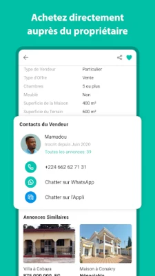 – Communiquer directement avec les vendeurs et les acheteurs: se renseigner, négocier en temps réel. Utiliser le chat gratuit dans l'application pour communiquer ou appeler directement dans WhatsApp messenger.
